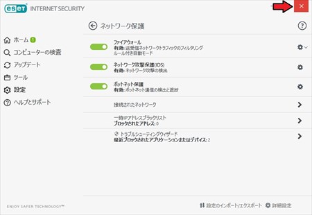 | ①セキュリティソフトを一旦アンインストール(プロダクトキー確保等再インストールに備える) ②セーフモードで起動(設定>更新とセキュリティ>回復>PCの起動をカスタマイズ>今すぐ起動) ③ネットワークアダプターをデバイスマネージャーから削除 *セキュリティソフトによって完全アンインストールツールが提供されている場合は実行する ④再起動(通常起動) ⑤セキュリティソフトを再インストール *セキュリティソフトのネットワーク接続ツールなどLAN関連のオプションで他のPCを認識していることを確認する(ESET ツール>ホームネットワーク保護) ⑥エクスプローラーでネットワークを最新の情報に更新することで他のPCが表示されるか確かめる ⑦⑥で他のPCが表示されたらログインを試みる ⑧「ネットワークエラー \\exampleにアクセスできません」表示が出る場合は資格情報マネージャーを開いてWindows資格情報の追加から目的のPCのネットワークパス(\\example)を追記してユーザー名とP/Wを登録する ⑥再起動から⑦を再度試みて共有フォルダーが表示されてファイルにアクセスできるか確かめる |